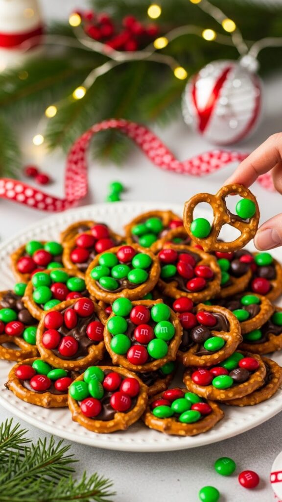 Why are these pretzel treats so special? Honestly, because they hit every pleasure point at once. The salty crunch wakes up your palate. The warm chocolate melts just enough to hug the pretzel. The festive candy topper gives it sweetness and a burst of color. It’s the kind of treat kids love, adults devour, and even picky dessert people appreciate. And the best part—you can make dozens in minutes. They’re basically holiday joy in snack form.