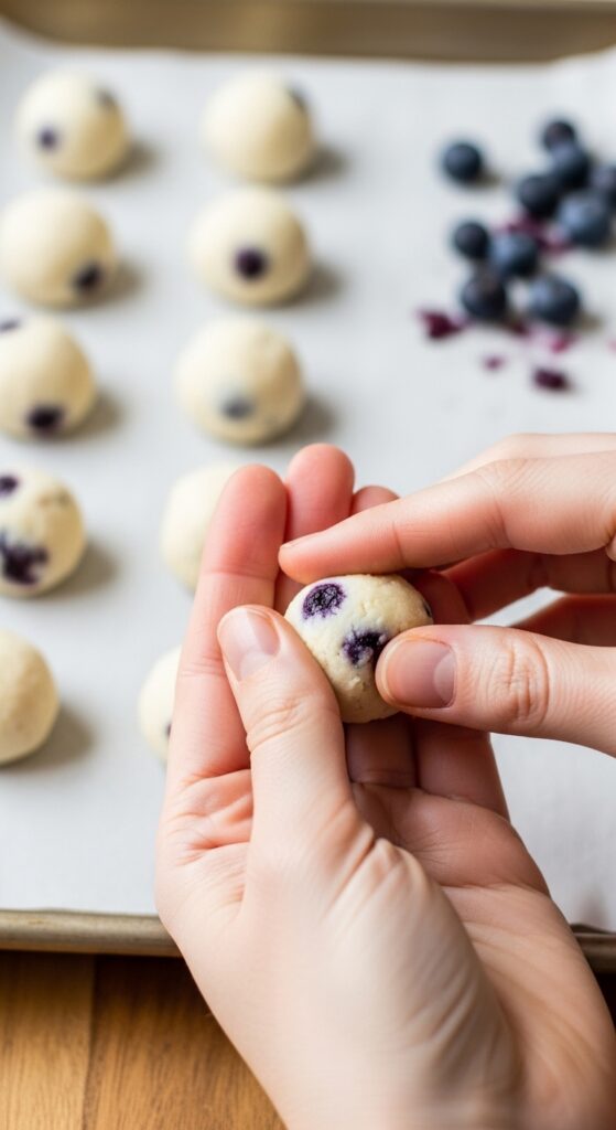 Gently mix in blueberries. If using frozen, don’t overmix—they’ll bleed color fast. A few purple streaks look pretty, though! - Chill for easier shaping