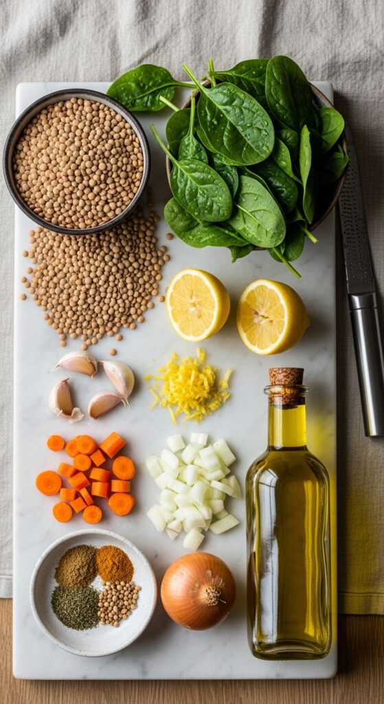 It’s inspired by Mediterranean-style cooking — where lentils meet citrus, herbs, and olive oil. You get brightness from lemon, depth from garlic, and just enough spinach to make you feel like you’re doing something right for your body.