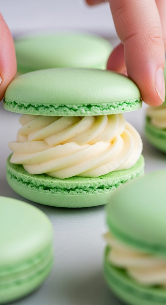 Chill for 24 hours in an airtight container before serving. This “matures” the macarons—the shell softens slightly, the filling infuses, and the texture becomes perfect.