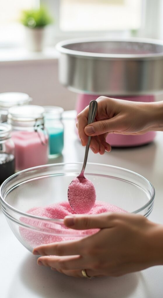 Expert tip: Use superfine sugar if your machine allows—it melts smoother and spins lighter. And store your mix in an airtight container before spinning, since sugar loves to pull moisture from the air.