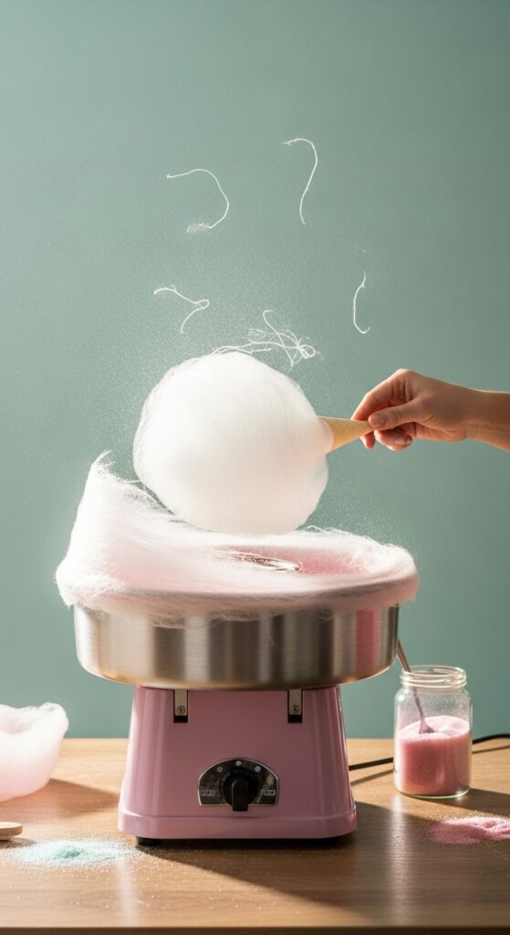 Alright, time to spin some magic. Whether you’re using a home cotton candy maker or going old-school stovetop, the process is easy once you get the rhythm.