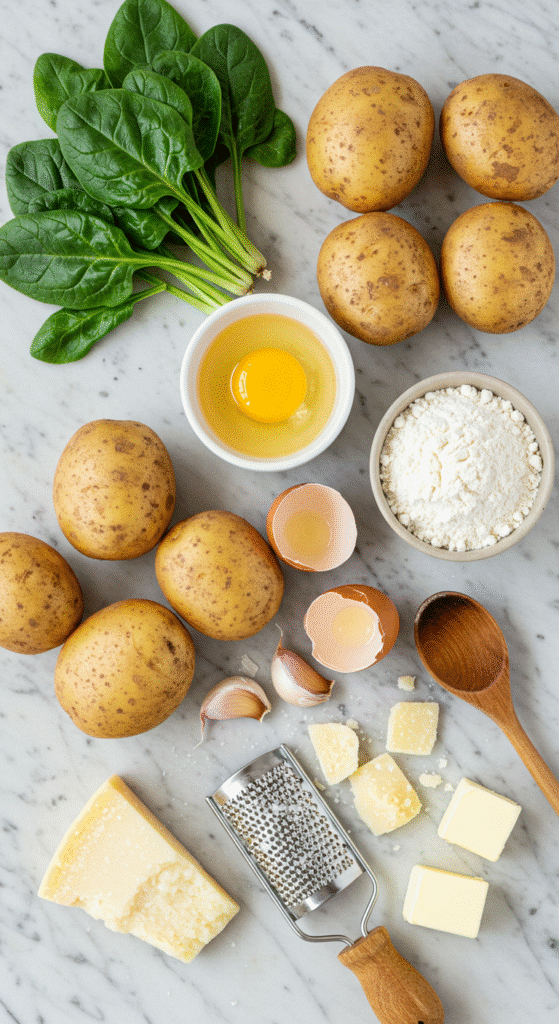 Creamy Spinach and Garlic Gnocchi Recipe always starts with the gnocchi. If you’re making it yourself, bake your russet potatoes instead of boiling them. Why? Because water is the enemy. Baking keeps the potatoes dry, which means fluffier gnocchi. Mash them while warm, mix with egg and flour gently, never kneading like bread. Too much kneading and you’ll have potato bullets, not pillows.