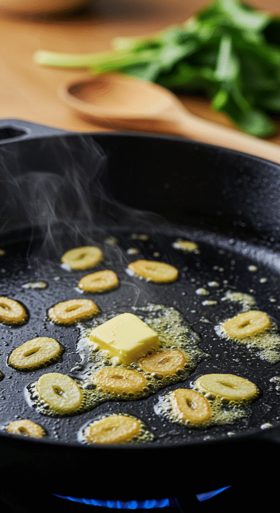 Garlic works differently depending on treatment. Crushed garlic bleeds allicin instantly, giving sharp bite. Sliced garlic caramelizes slowly, giving sweetness. That’s why for this recipe slicing works better—you want garlic to melt into cream, not scream above it.