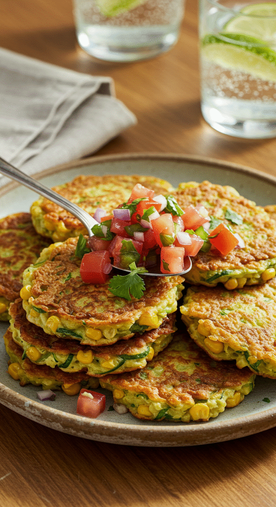 Crispy Corn and Zucchini Fritters with Fresh Salsa