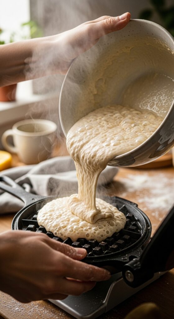 There’s something magical about sourdough in waffle form. It’s that tang — subtle, nuanced, alive — that you just don’t get from ordinary batter. The fermentation gives depth, a whisper of complexity, and that airy structure inside the crisp shell.