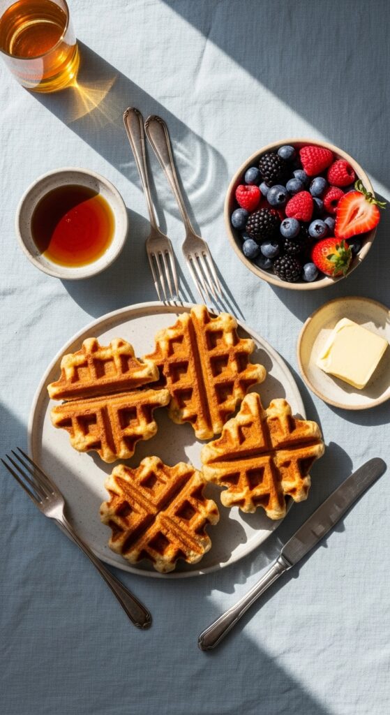 These waffles don’t need much — they’re already stars. But pairing them well turns breakfast into an experience.