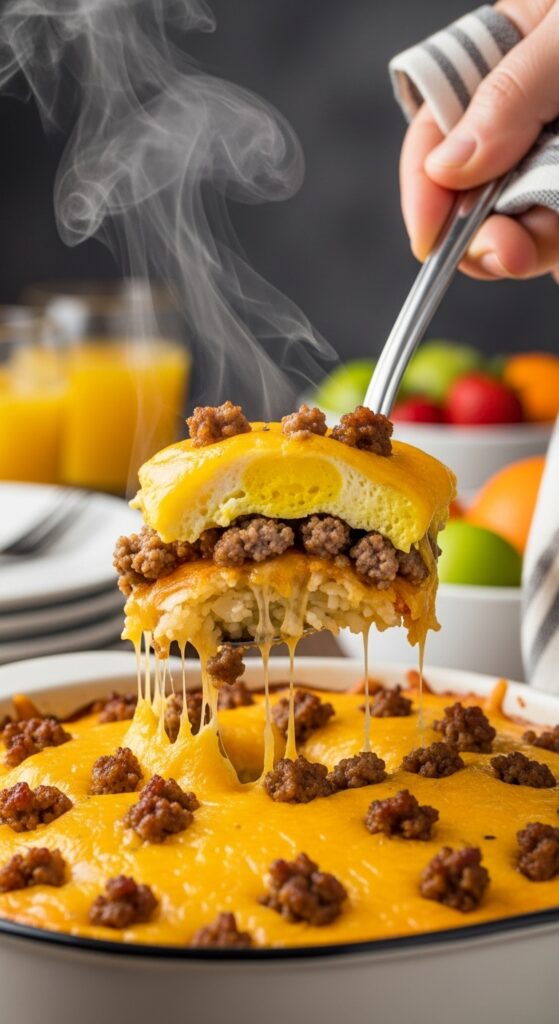 It’s also a life-saver for busy mornings. You can prep it at night, set it to low, and wake up to breakfast done. No frantic flipping pancakes or frying eggs while trying to sip coffee. It’s all warm, ready, and waiting. And because it cooks low and slow, the texture stays soft and fluffy — no dry eggs, no rubbery edges. Just rich, comforting layers of flavor.