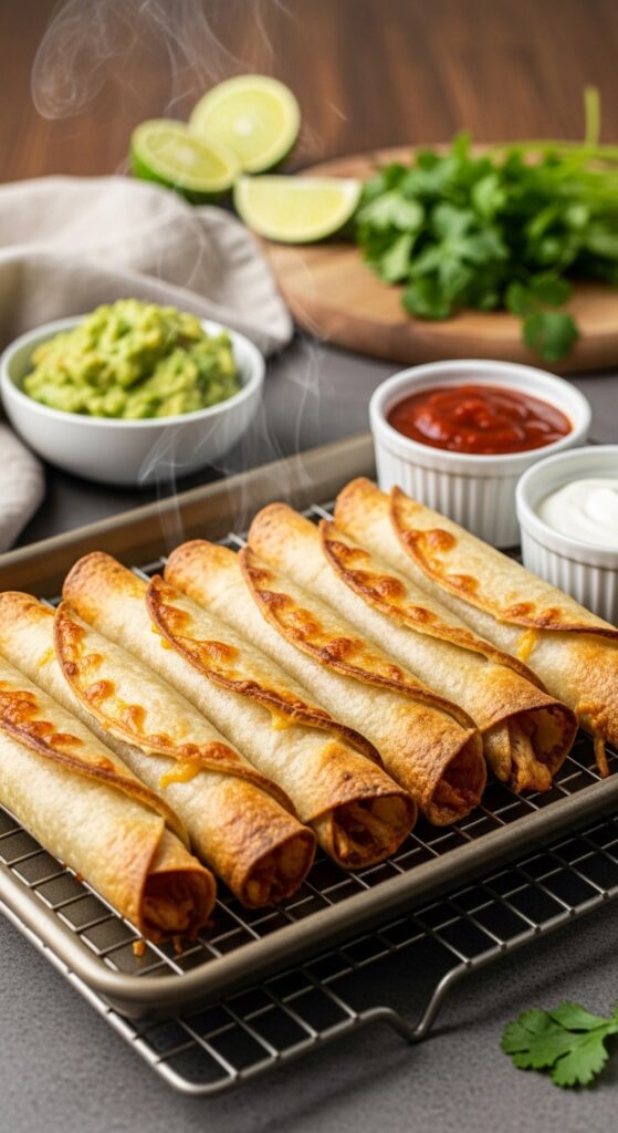 And here’s a chef secret: if you want next-level crunch, finish the baked taquitos under the broiler for 1–2 minutes. Watch them like a hawk—they’ll go from golden to burnt in seconds, but that final blast gives a fried-like finish that’s perfection.