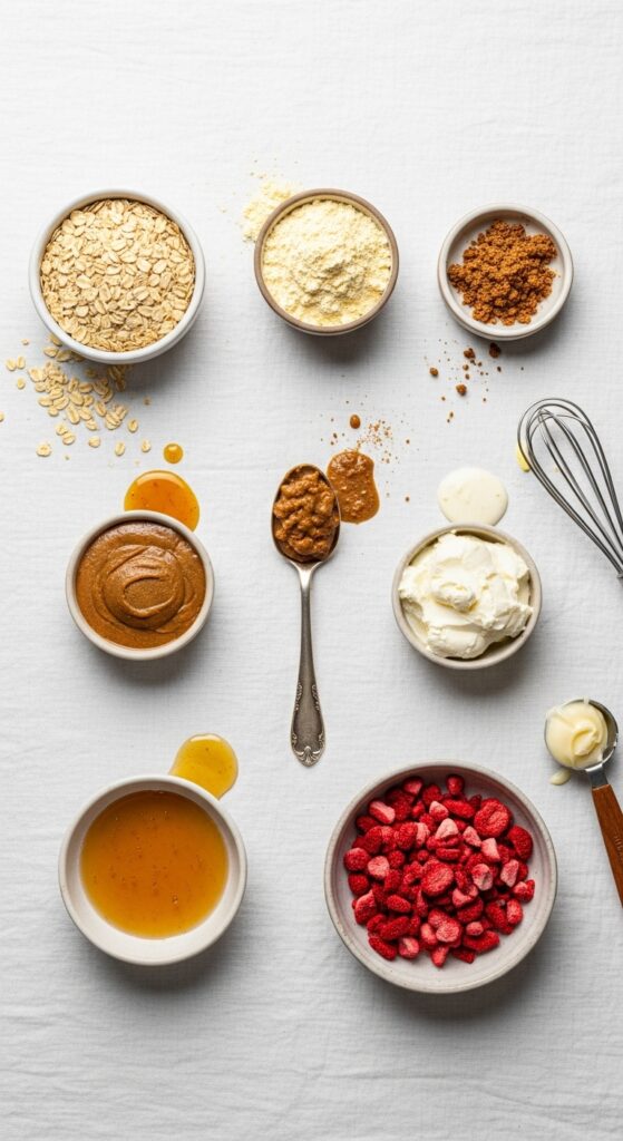 • Freeze-dried strawberries (½ cup, crushed): Pure concentrated strawberry flavor—no soggy fruit here.