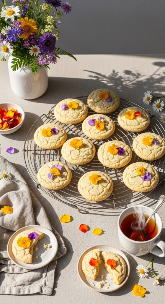 These cookies aren’t complicated, but they feel special. Each one looks like a miniature meadow, dotted with edible flowers, sugared herbs, and pastel hues. They’re the type of treat that makes people pause for a second before taking a bite, just to admire the detail. And once they taste that soft, buttery crumb with the pop of gentle floral notes, well… you’ll probably need another tray.