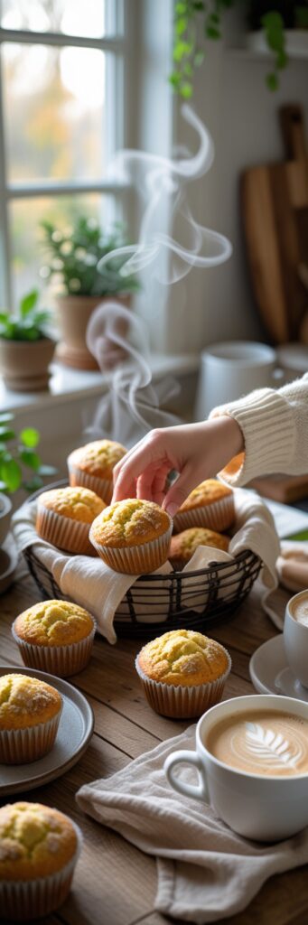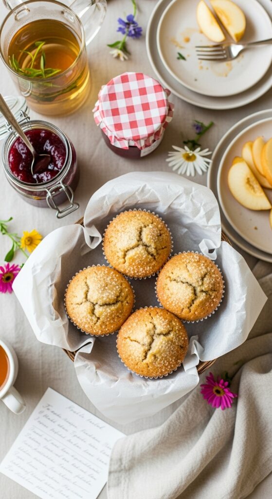 Presentation matters. Stack a few muffins in a linen-lined basket, dust them lightly with powdered sugar, and watch them disappear.