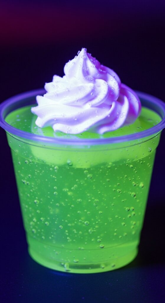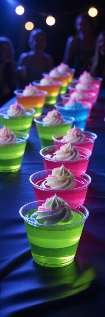 What’s beautiful about this recipe is that it’s endlessly customizable. You can make layered neon cups, glowing shots for adults, or fun fruit-filled versions for kids. It bridges that gap between kitchen craft and science experiment, and somehow still tastes delicious.