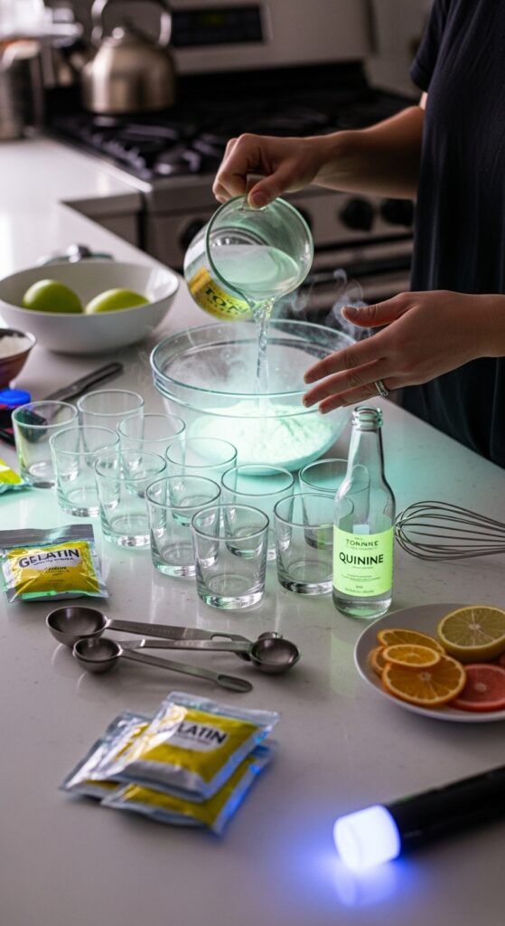 The secret ingredient behind the glow? Tonic water. Yep, that fizzy, slightly bitter mixer hiding in your bar. It contains quinine, a compound that fluoresces under UV blacklight. Mix it with your favorite flavored gelatin, and boom—glow city.