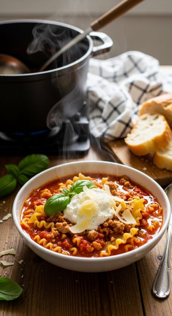 There’s no layering, no waiting for cheese to brown, just that same deep, homey flavor in every spoonful. It’s proof that good food doesn’t have to be complicated, just thoughtful. So the next time the craving hits, skip the oven and grab your soup pot—this cozy twist will make you wonder why you ever made lasagna the old way.