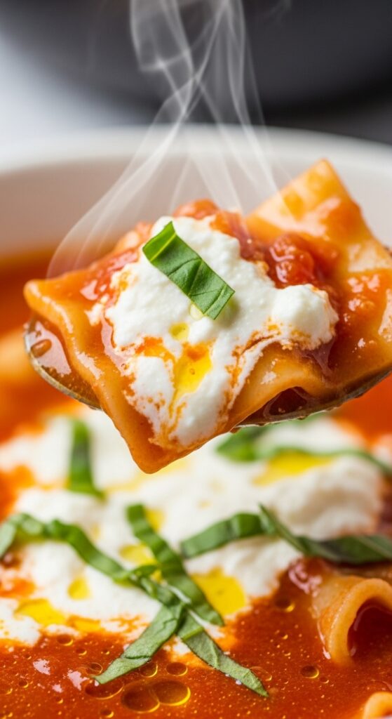 And that basil ricotta topping? It’s the game changer. Cool, creamy, fragrant—it sits on top of the hot soup and melts into little ribbons of flavor. Each bite has this wonderful mix of warm and cool, rich and fresh. It’s lasagna reimagined for your soup spoon.