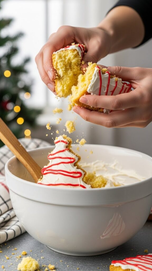 1. Crumble the Christmas Tree Cakes into a mixing bowl.