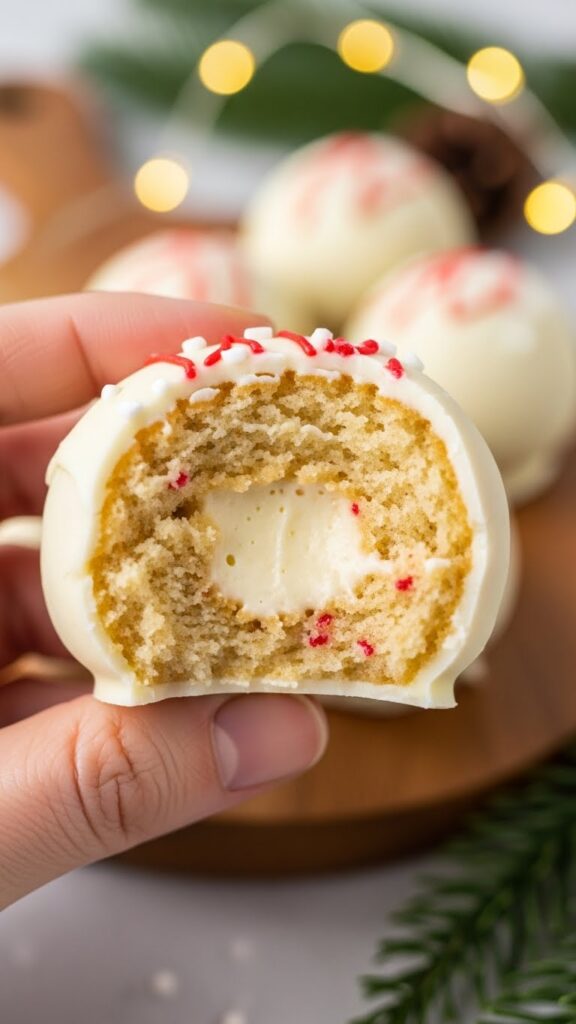 They’re also no-bake—well, mostly. The cakes are already baked, so you’re simply transforming them. The texture becomes soft and truffle-like, almost like a holiday version of a cake pop but creamier. And because the cakes come with their own icing and filling, you get this naturally balanced sweetness without extra work.