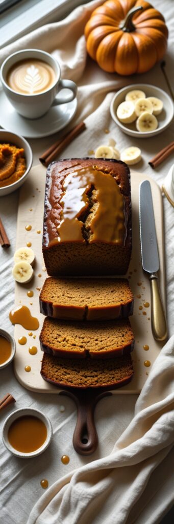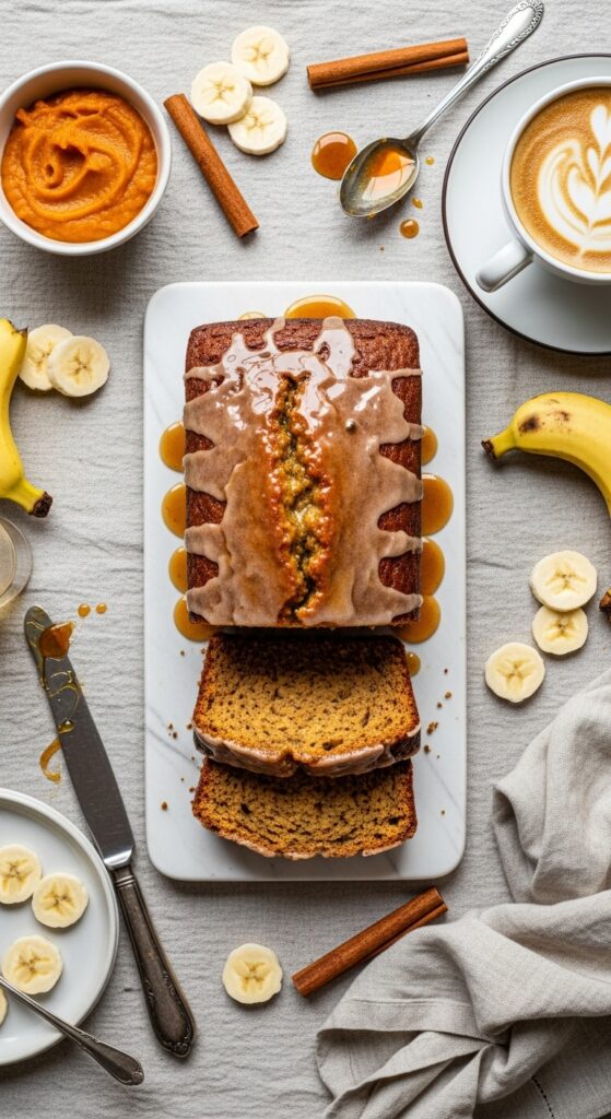 This isn’t your standard loaf. It’s moist, soft, and deeply aromatic. The pumpkin purée adds body and that iconic autumn flavor, while ripe bananas lend sweetness and tenderness. The maple glaze, oh that glaze, adds a glossy finish and a warm caramel tone that makes each bite a little indulgent.
