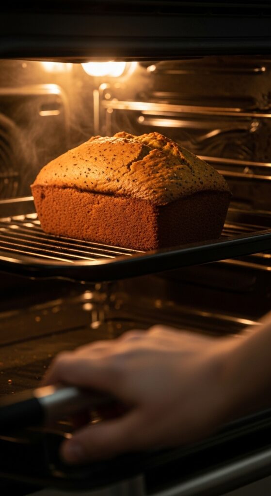 Pour it into your prepared loaf pan, smooth the top, and tap it lightly on the counter to release air bubbles. Bake for 55 to 65 minutes, or until a toothpick inserted into the center comes out mostly clean. A few moist crumbs are perfect.
