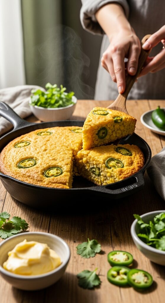 And lastly, this cornbread isn’t shy. It’s bold. The jalapeños add a playful heat that cuts through the natural sweetness of corn, giving it that irresistible savory depth.