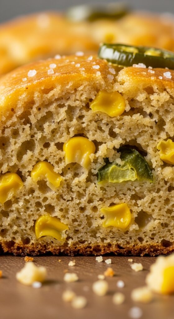 First, it’s savory, not sweet. The combination of fresh jalapeños, sweet corn, and smoky undertones makes it the kind of bread that belongs next to chili, grilled veggies, or even your Sunday brunch tofu scramble.