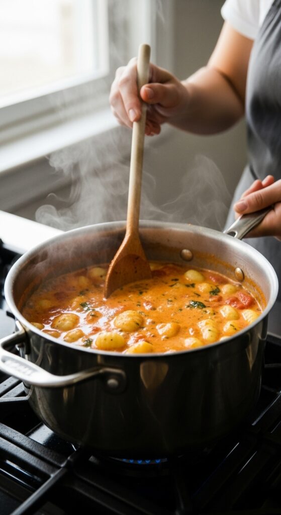 Adding gnocchi last: Since gnocchi cook quickly, adding them at the end keeps their texture perfect. They absorb just enough broth without disintegrating.
