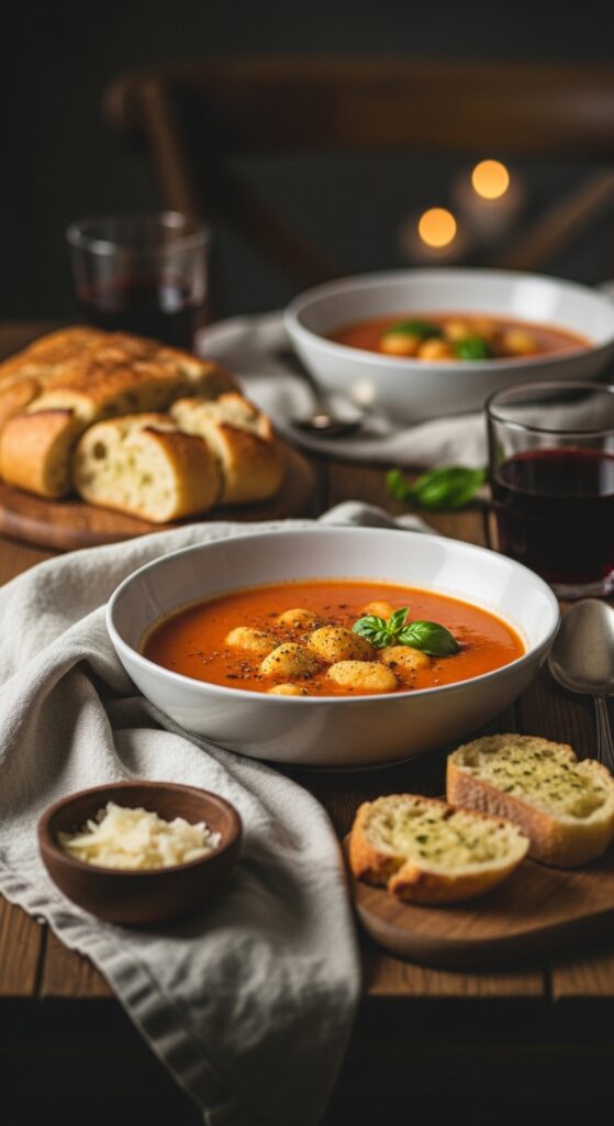 It’s the kind of meal that can turn an ordinary weeknight into something cozy and memorable. A bowl of Tomato Gnocchi Soup, a chunk of crusty bread, and maybe a glass of Chianti — and suddenly, life slows down a bit.