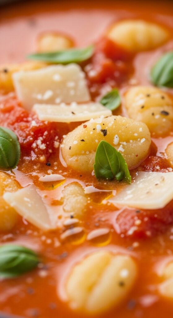 If you’ve never had gnocchi in soup before, prepare to be converted. It’s like pasta’s softer, fluffier cousin decided to dive into a pot of tomato heaven.