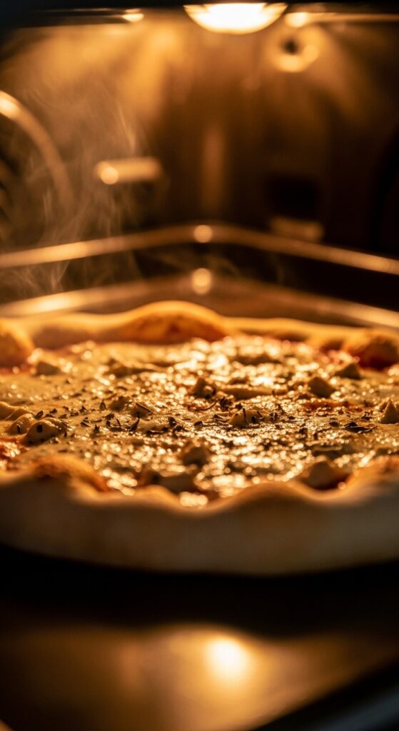 Preheat your oven fully, use a pizza stone or steel, and bake hot. High heat = crispy crust, tender inside, pure perfection.