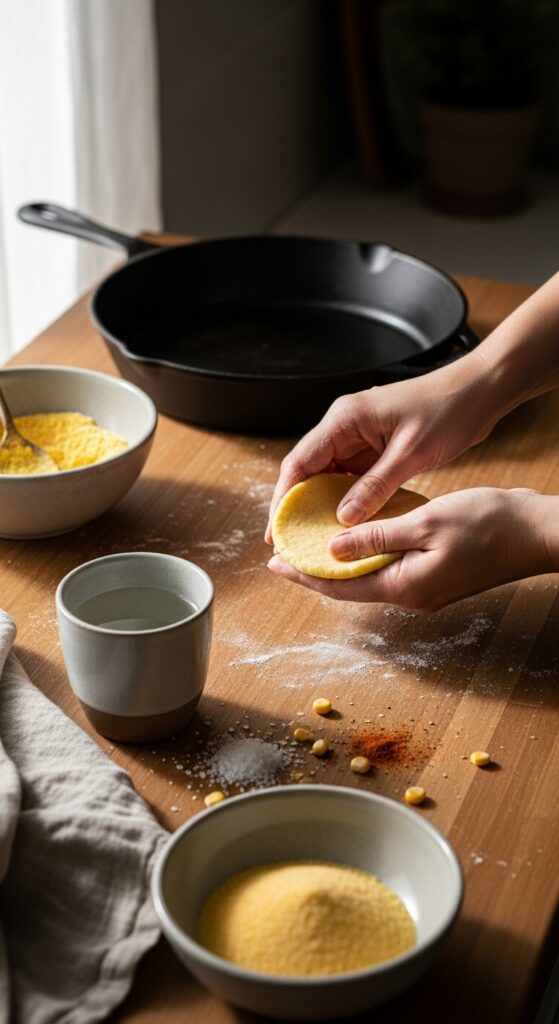 Arepas seem easy, but the science behind them is sneaky. Masarepa is precooked cornmeal, which means it rehydrates quickly. The right water ratio gives that soft interior while keeping structure. Too little water and they’ll crack. Too much, and they’ll fall apart when you cook them.