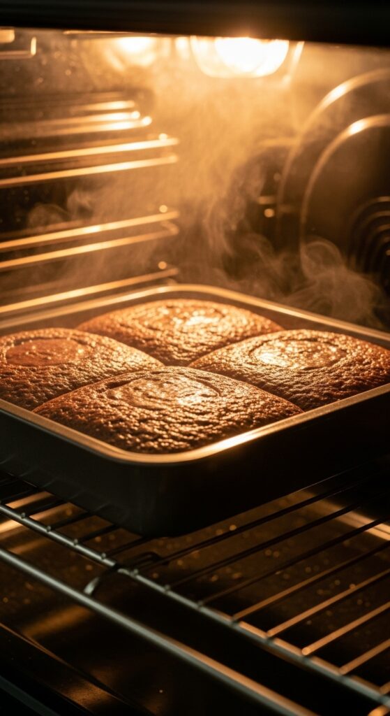 Pour the thick, glossy batter into your prepared pan. Smooth it evenly. Bake for 25–30 minutes. The top should be shiny and set, but a toothpick inserted in the center should come out with moist crumbs (not wet batter). - Cool Completely
