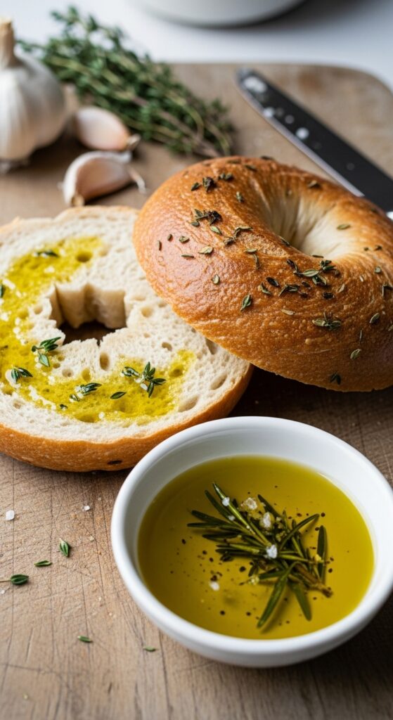There’s also a cultural nudge here. Bagels were born in Eastern Europe and became iconic in New York, but this version nods to Mediterranean flavors—olive oil, garlic, rosemary—so you get a cross-continental handshake in every bite.