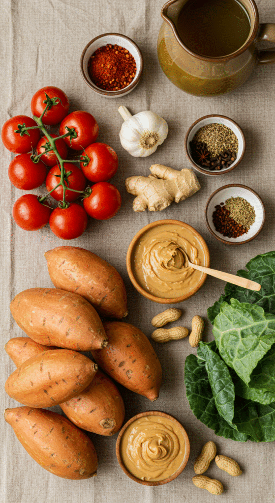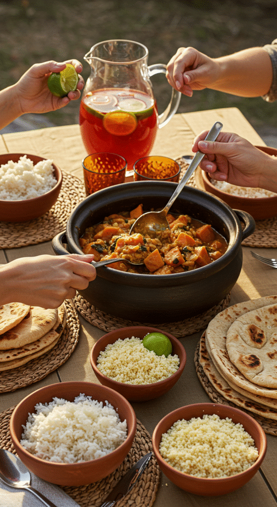 West African-Inspired Sweet Potato and Peanut Stew reflects culture as much as science. Groundnut stews are everyday meals across Senegal, Mali, Ghana, and beyond. Each region layers its own twist—some add fish, others more chilies, some more leafy greens. This isn’t one rigid recipe but a living tradition.